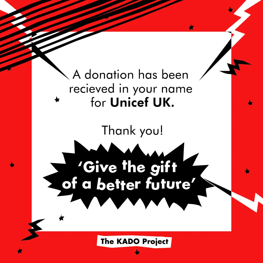 Thank you for your donation to Unicef UK, and for supporting The Kado Project!